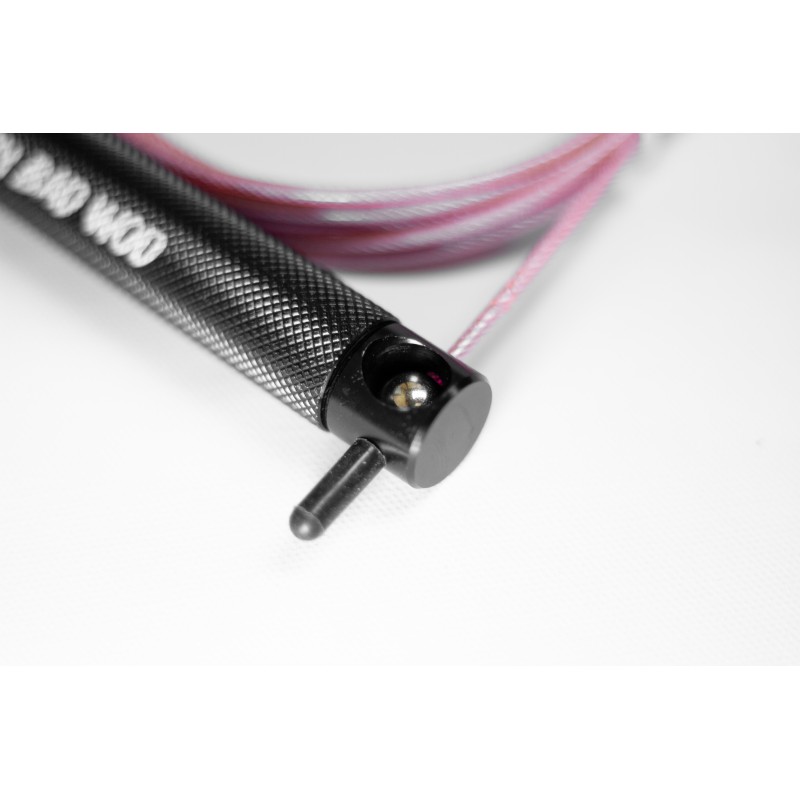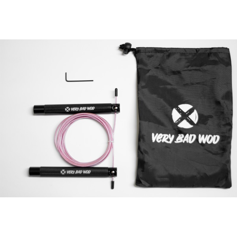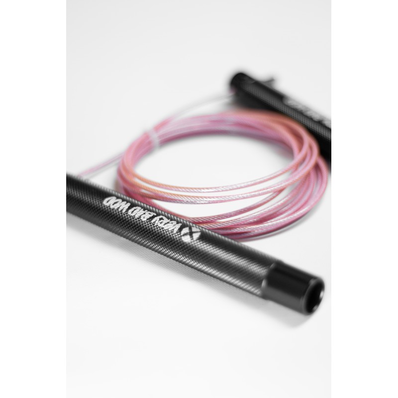 Corde à sauter noire Câble rose SPEED + pour Athlète de niveau débutant / intermédiaire proposée par VERY BAD WOD, idéal pour les DU.