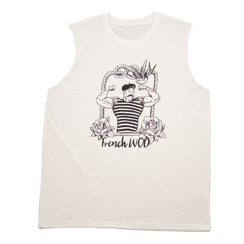 Ce muscle tank Homme sport blanc FRENCH WOD sera un allier pour tous les Athlètes cherchant le confort et le style. Design Fun by Very Bad Wod.