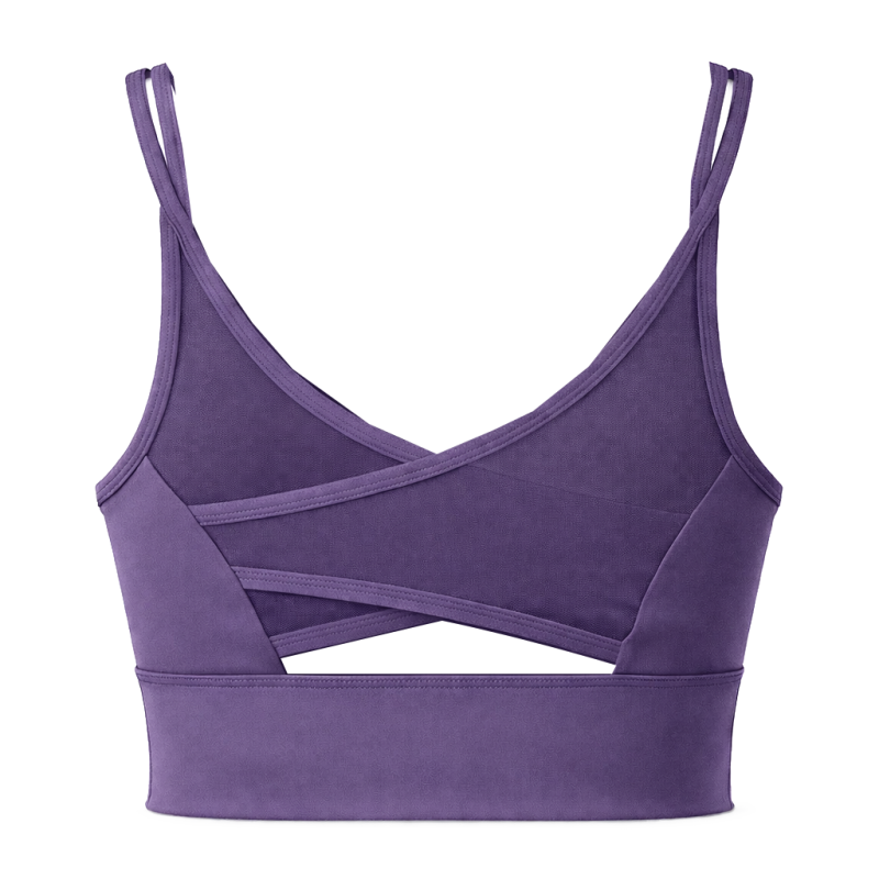 Cette brassière coupe légèrement échancrée avec de la mesh et croisée sur l'arrière avec double bretelle est composée d'un tissu respirant évacuant l'humidité. Son élastique large et solide, vous offrira un un bon maintien.
