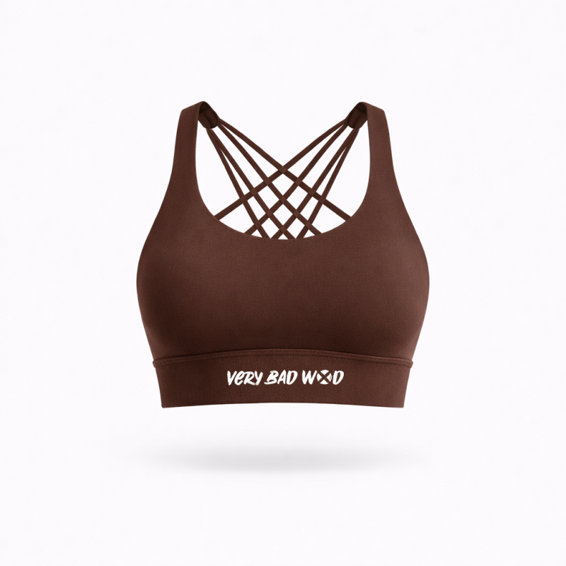 Ce brassière marron ISABEL de chez VERY BAD WOD coupe low impact est le choix des athlètes cherchant le confort et le style.