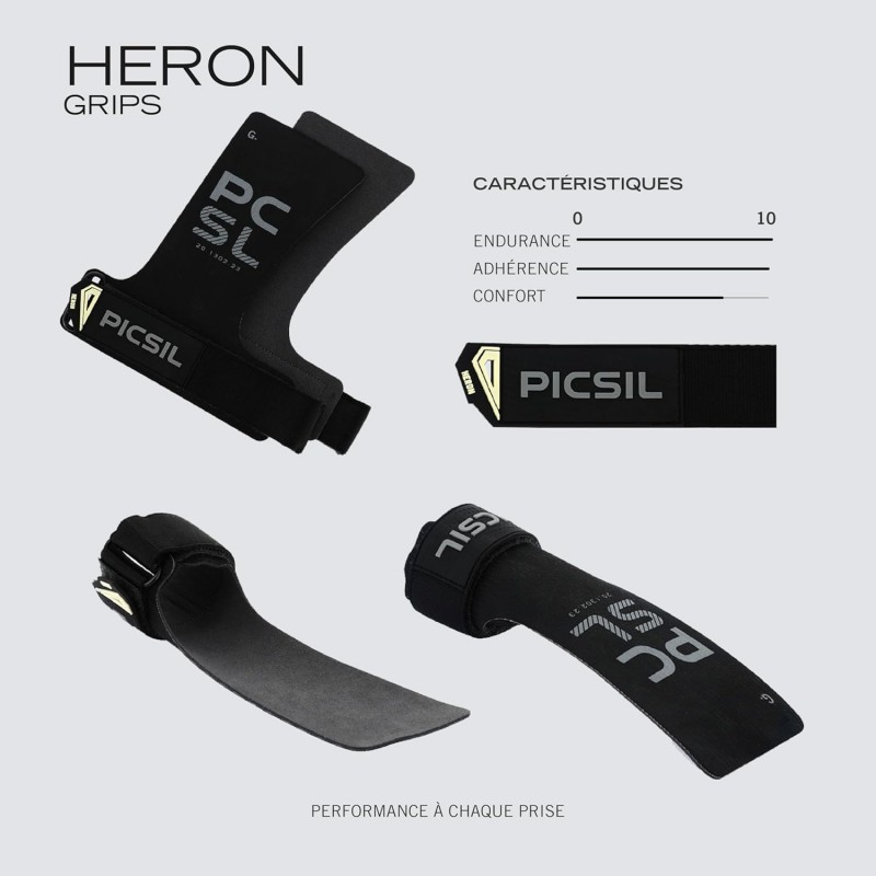 Les maniques Heron Picsil sont le fruit d'une écoute attentive des besoins des athlètes. Leur forme ergonomique iconique reste inchangée, optimisée pour une utilisation sans magnésie tout en gardant l'efficacité qui a fait leur succès. Le nouveau système de fermeture en velcro renforcé garantit un maintien solide sans gêner la circulation, tandis que la languette en silicone permet de retirer rapidement vos maniques entre deux exercices.