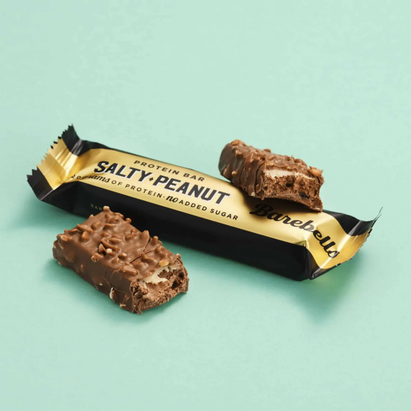 Le pack de 12 Barres protéinées naturelles et savoureuses BAREBELLS (12x55 gr), saveur CACAHUÈTES SALÉES.