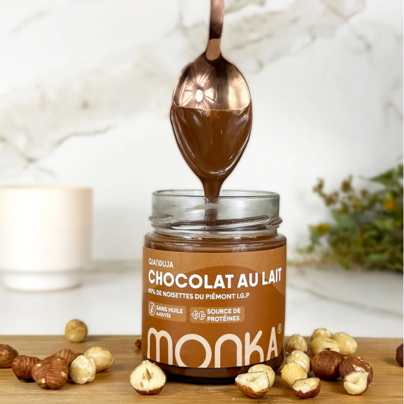 Pâte à tartiner de 200 Gr de GIANDUJA - CHOCOLAT AU LAIT proposé par la marque MONKA.