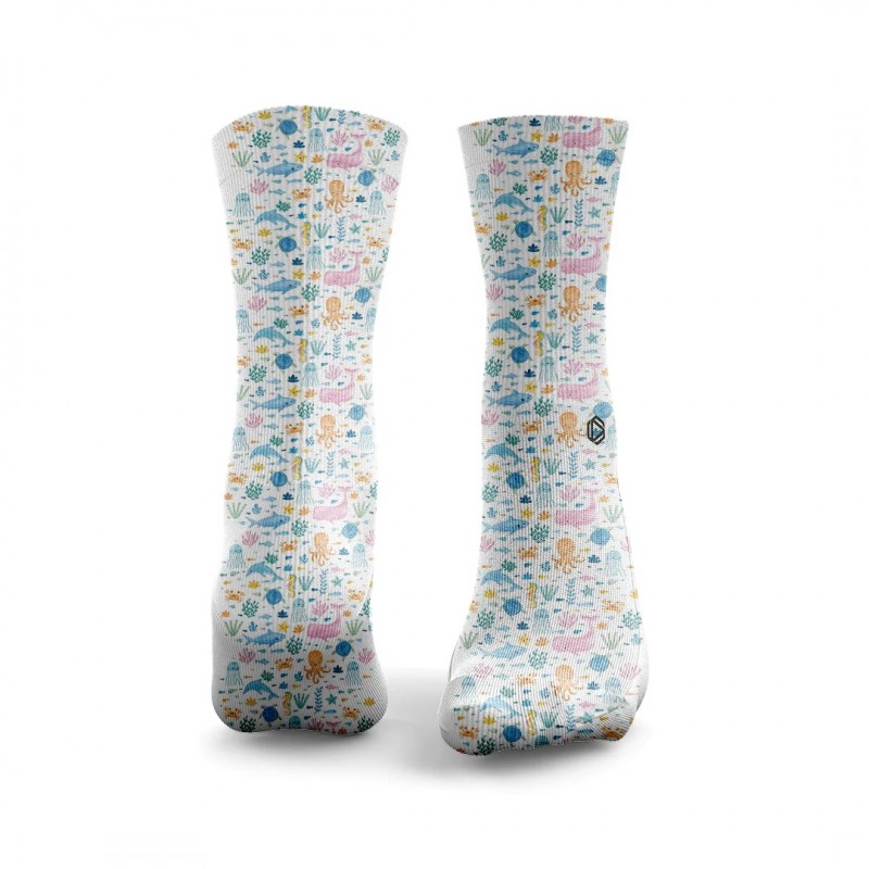 The HEXXEE Sea Creatures socks blend your passion for fitness with a splash of style. Covered in quirky ocean creatures on a bold blue base, this printed design is both fun and functional. But don't let the playful visuals fool you-these socks are engineered for peak performance in CrossFit®, HYROX, running, hiking, and all kinds of intensive training.